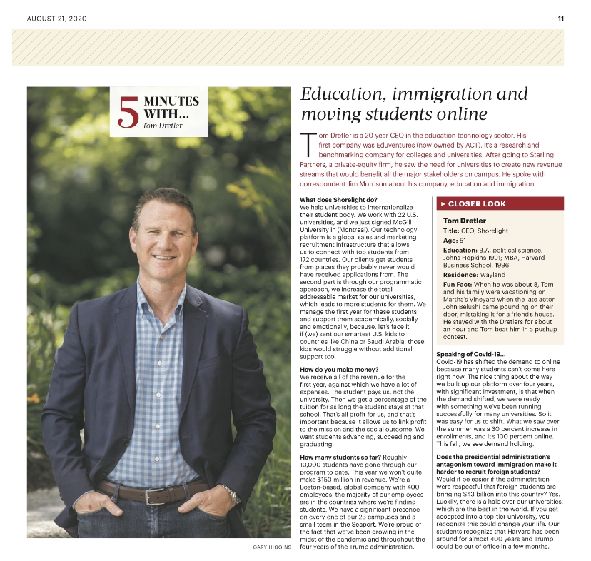 Boston Business Journal | 5 Minutes With… Tom Dretler of Shorelight.